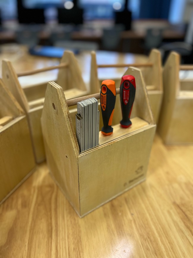 Im Wahlpflichtkurs Technik setzten Schülerinnen und Schüler theoretisches Wissen zu Plattenwerkstoffen und Holzverbindungstechniken praktisch um. Entstanden ist eine selbst gebaute Werkzeugbox – ein Projekt, auf das die Jugendlichen zu Recht stolz sind.