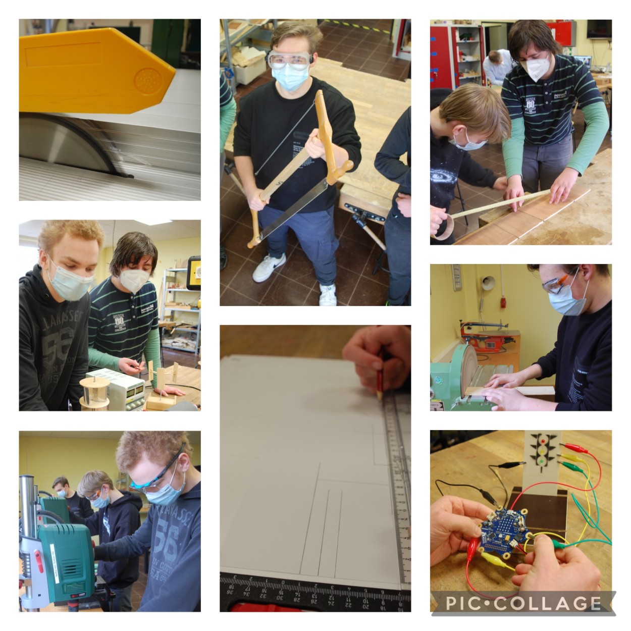 In Jahrgang 8 ist die Teilnahme am Fach Technik Pflicht, ab Jahrgang 9 kannst du es als ein Profilfach wählen. Du lernst den Umgang mit verschiedenen Werkzeugen und Maschinen kennen, indem du verschiedene Gegenstände aus Holz, Metall oder Kunststoff selber herstellst. Das macht viel Spaß, weil du deine kreativen Gedanken mit Kopf und Hand umsetzen kannst. An großen Zeichenbrettern und am Computer zeichnest du Werkstücke, die dann von Hand oder mit einem 3D-Drucker erstellt werden. Spannend ist die Programmierung von Mini-Computern und von Robotern. Zum Teil lernst und arbeitest du wie die Profis in der Berufsschule im Bereich Mechatronik und Elektrotechnik.