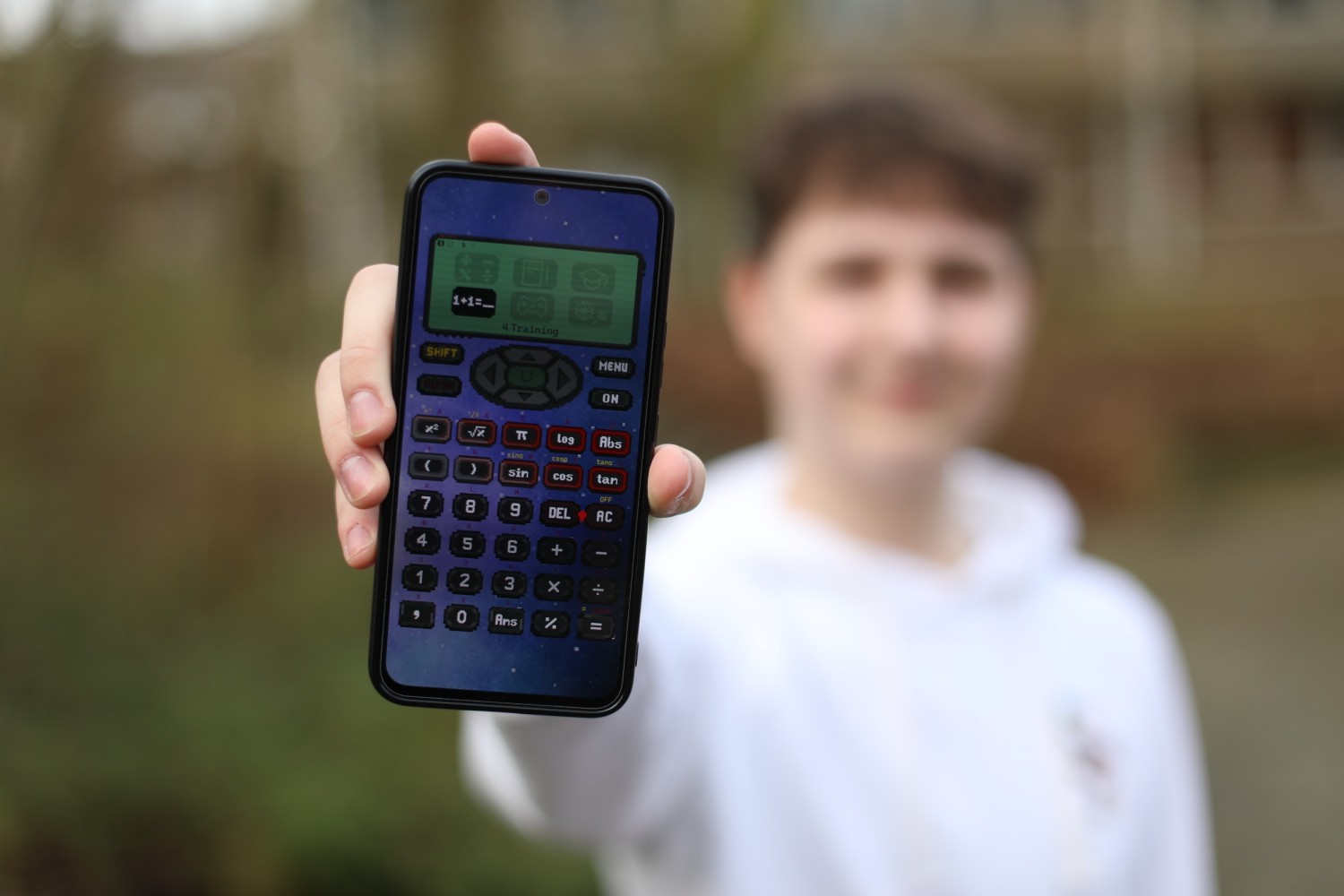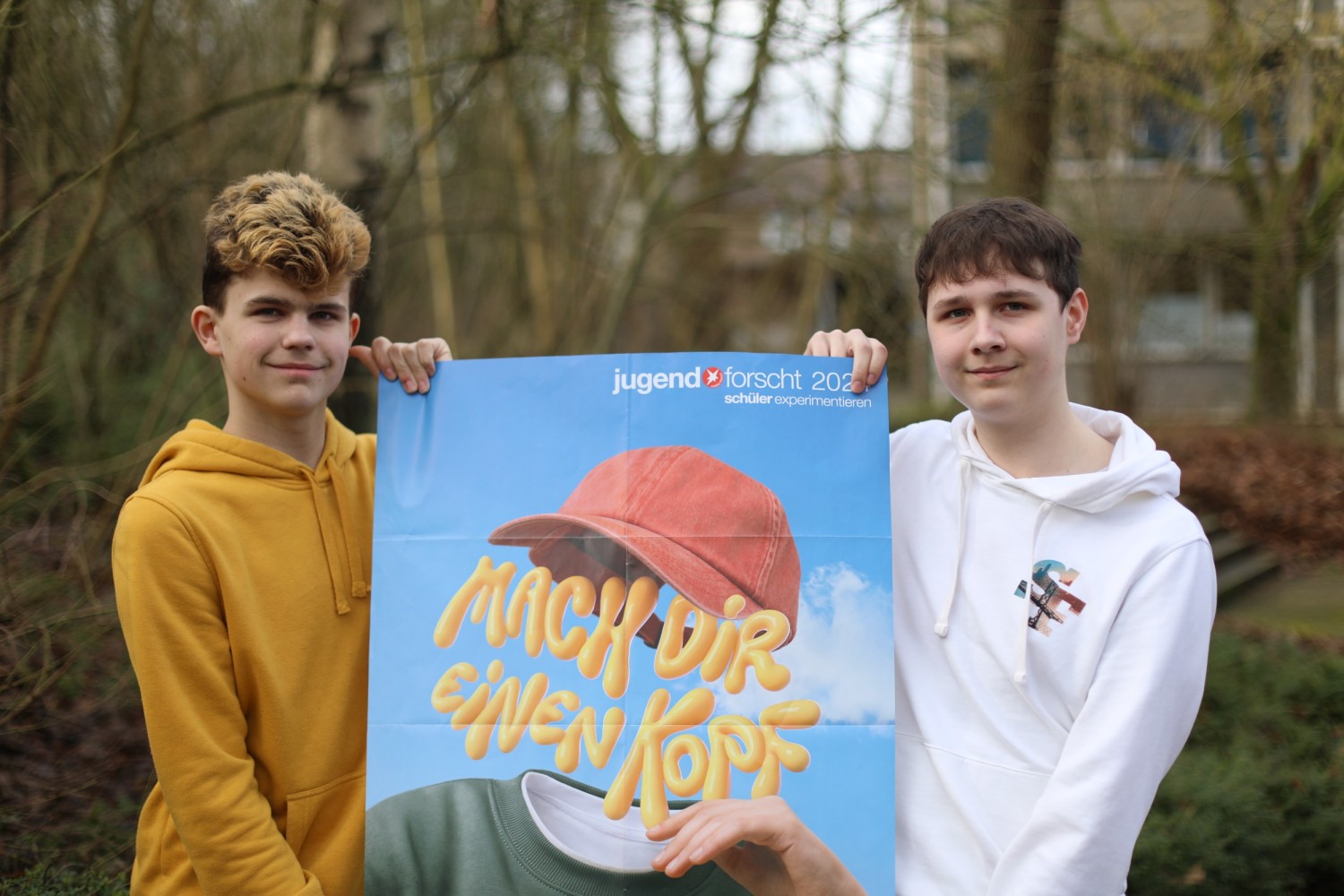 Artur Staub und Kuba Dykty, Schüler der Bertha-von-Suttner-Oberschule, präsentieren ihre innovative Taschenrechner-App "Mr. Math" beim Wettbewerb "Jugend forscht".