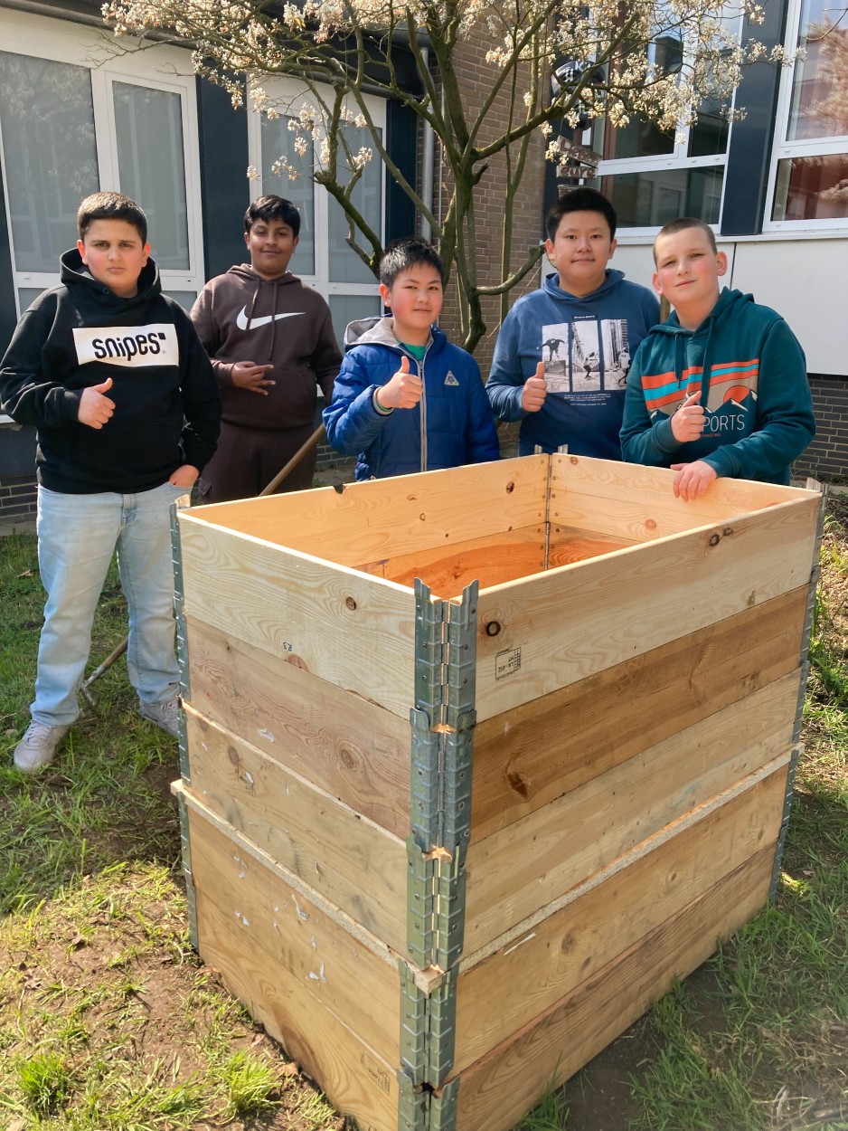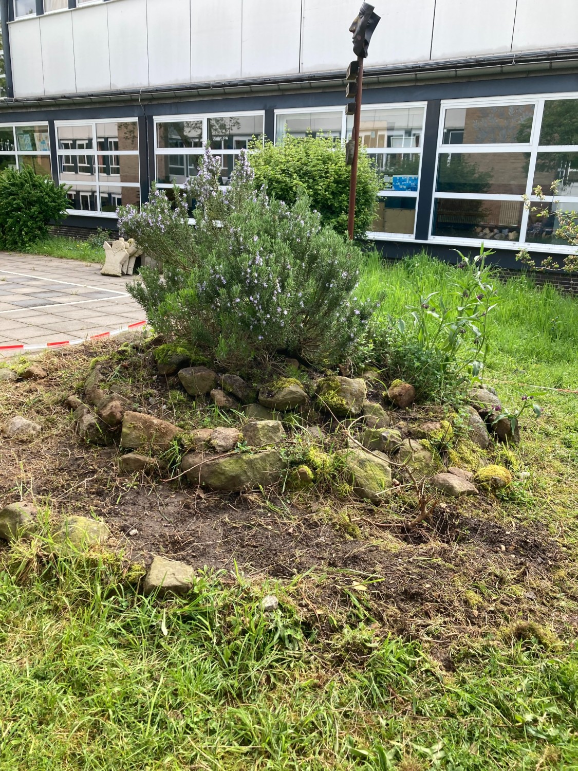 Im April dieses Jahres tat sich zum Thema Schulgartenarbeit so einiges im Garten der Ruhe. Herr Fastabend buddeltet und schuftete schwer mit seinem WPK, um die Kräuterspirale wieder zu neuem Leben zu erwecken! Neue Blühpflanzen wurden ergänzt, um den Insekten genug Nahrung zu geben. Frau Bleiker stellte mit einer 6. Klasse im Rahmen des Biologieunterrichts ein Hochbeet auf und ein zweites Hochbeet wurde von interessierten Schülern im Rahmen des Nachmittagsangebotes mit Hilfe von Frau Tetenborg aufgestellt und bestückt.
