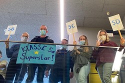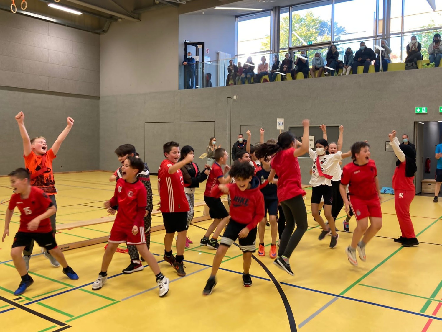 Das Signal ertönt, es gibt kein Halten mehr. Die „roten Teufel“ freuen sich ausgiebig und bejubeln ihren kürzlich eingefahrenen Erfolg (siehe Foto). Bis zur letzten Minute war es spannend. Mit nur einem Punkt Vorsprung sichert sich die Klasse 5D (siehe Foto) verdient den Wanderpokal und darf sich Bockballsieger 2021 nennen.