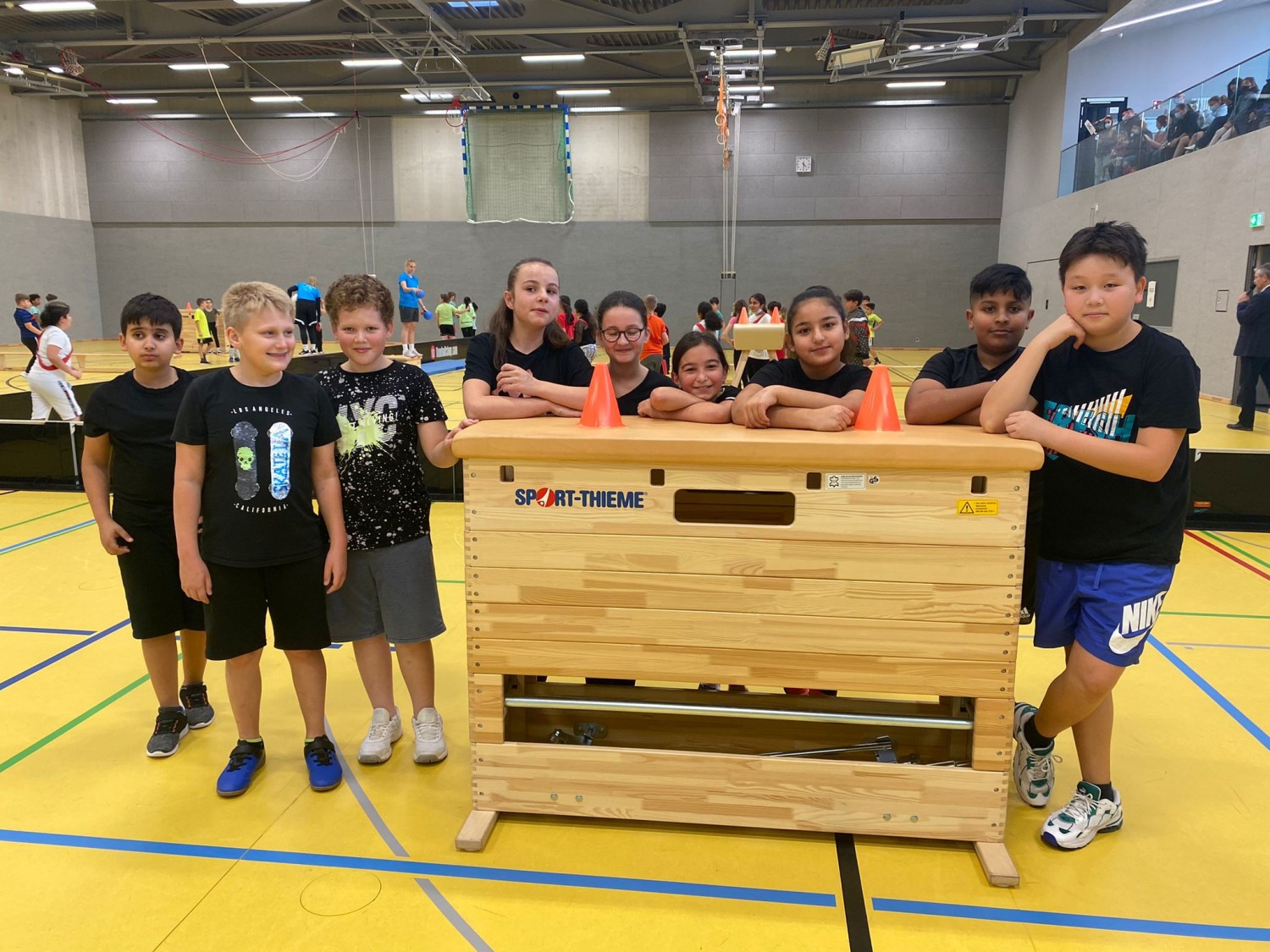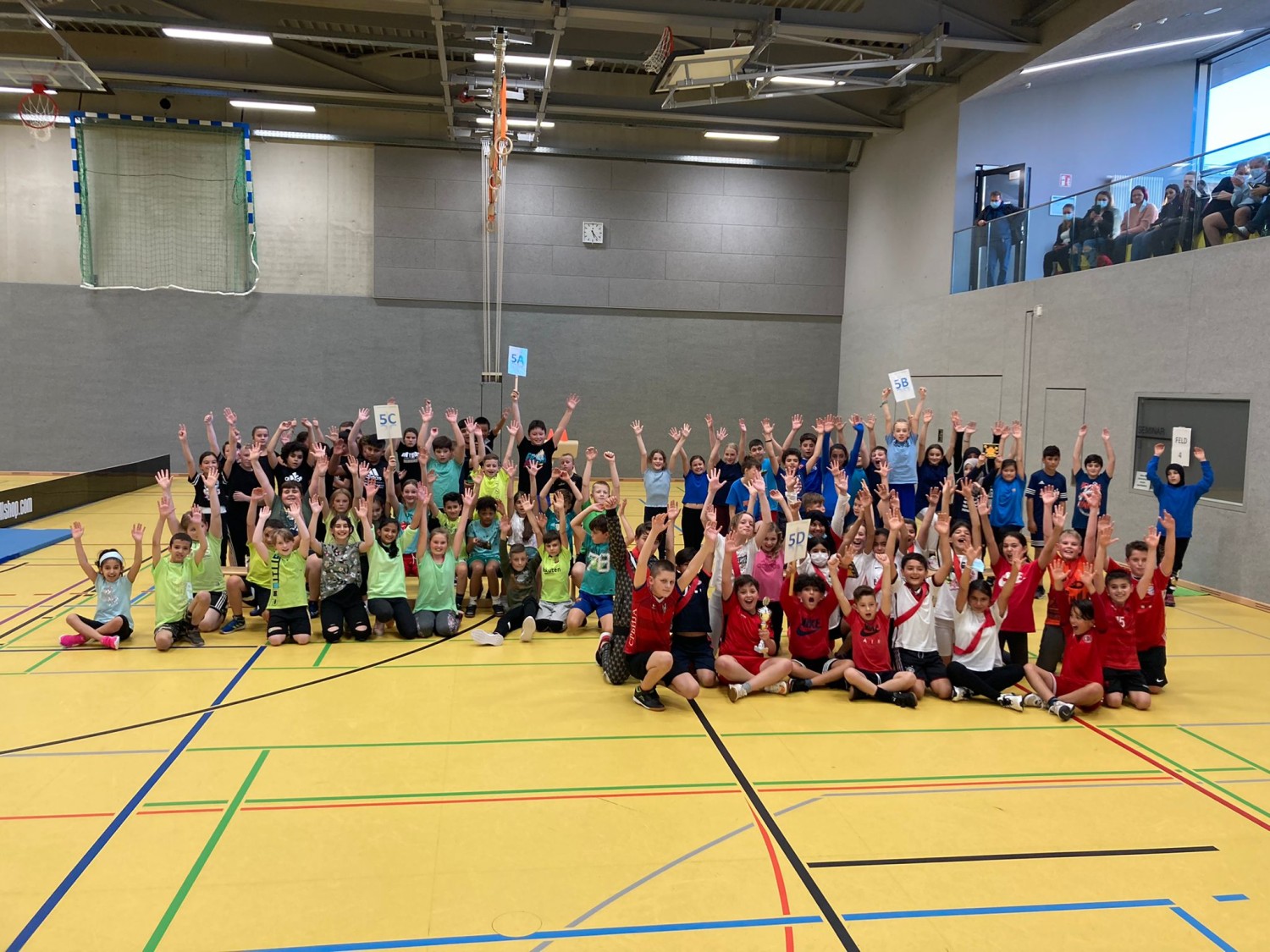 Im kleinen Finale gewinnt die 5C, sodass sich auf Rang drei und Rang vier die Klasse 5B und 5A befinden. Alle Mannschaften haben gut und fair gespielt, waren mit vollem Einsatz dabei und wussten, wie sie die zahlreichen Eltern überzeugen konnten. Auch die Sportlehrkräfte (siehe Foto) waren äußerst zufrieden mit dem Turnier. Wir bedanken uns ganz herzlich bei allen Mannschaften, die das Turnier so erfolgreich gestaltet haben und beim Förderverein unserer Schule (siehe Foto).