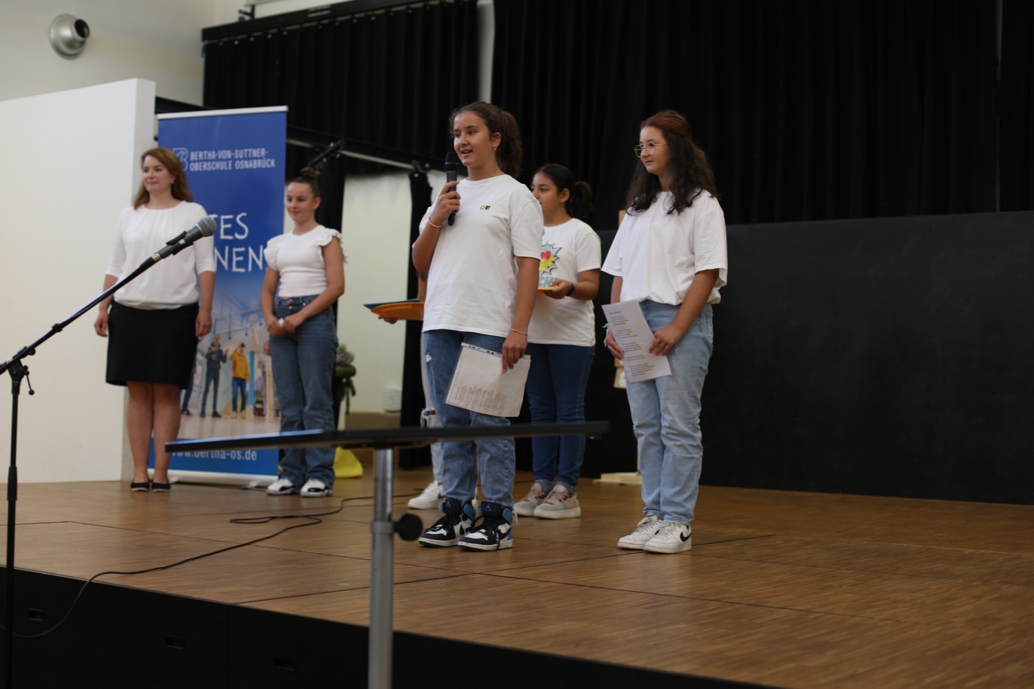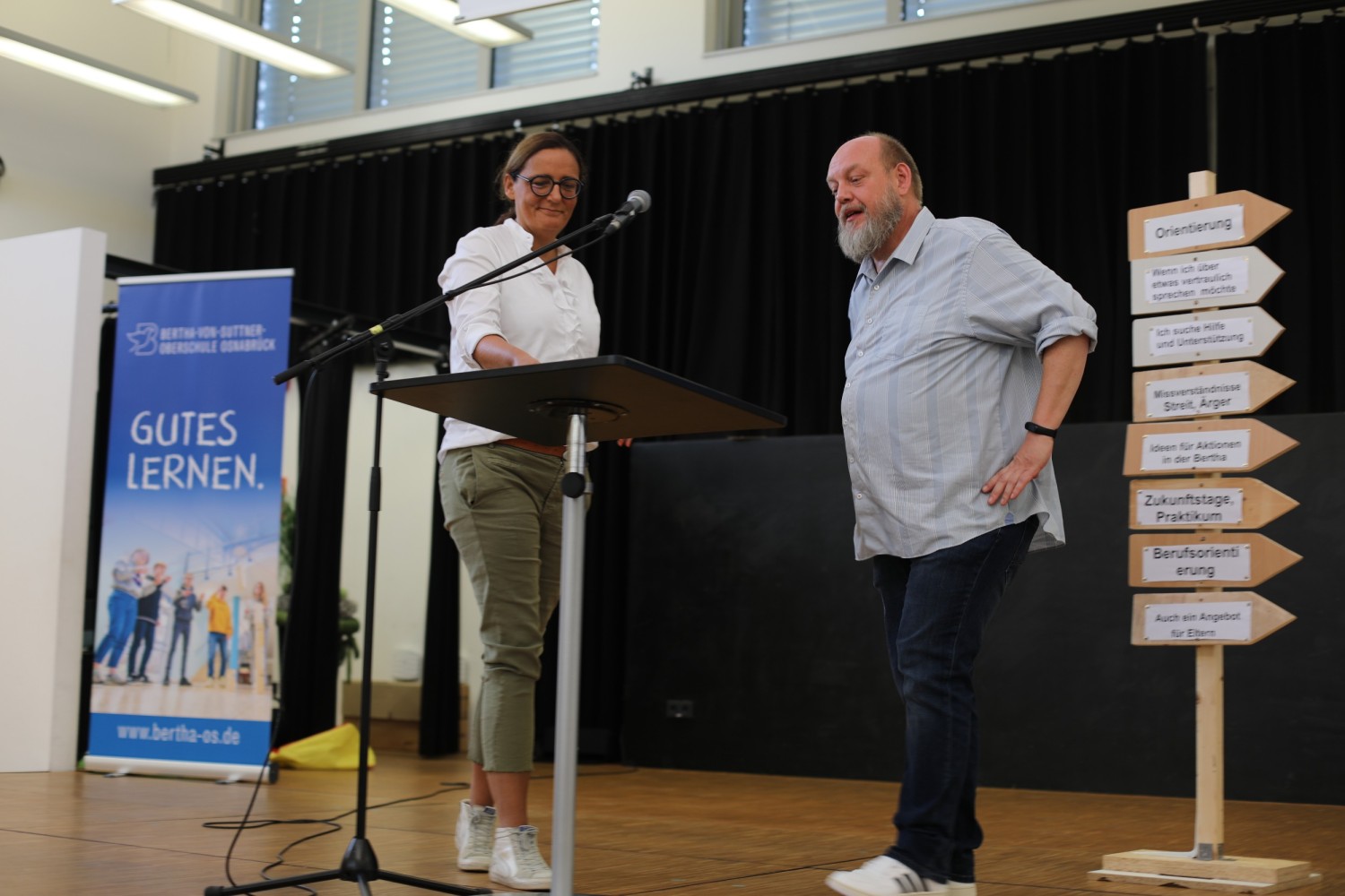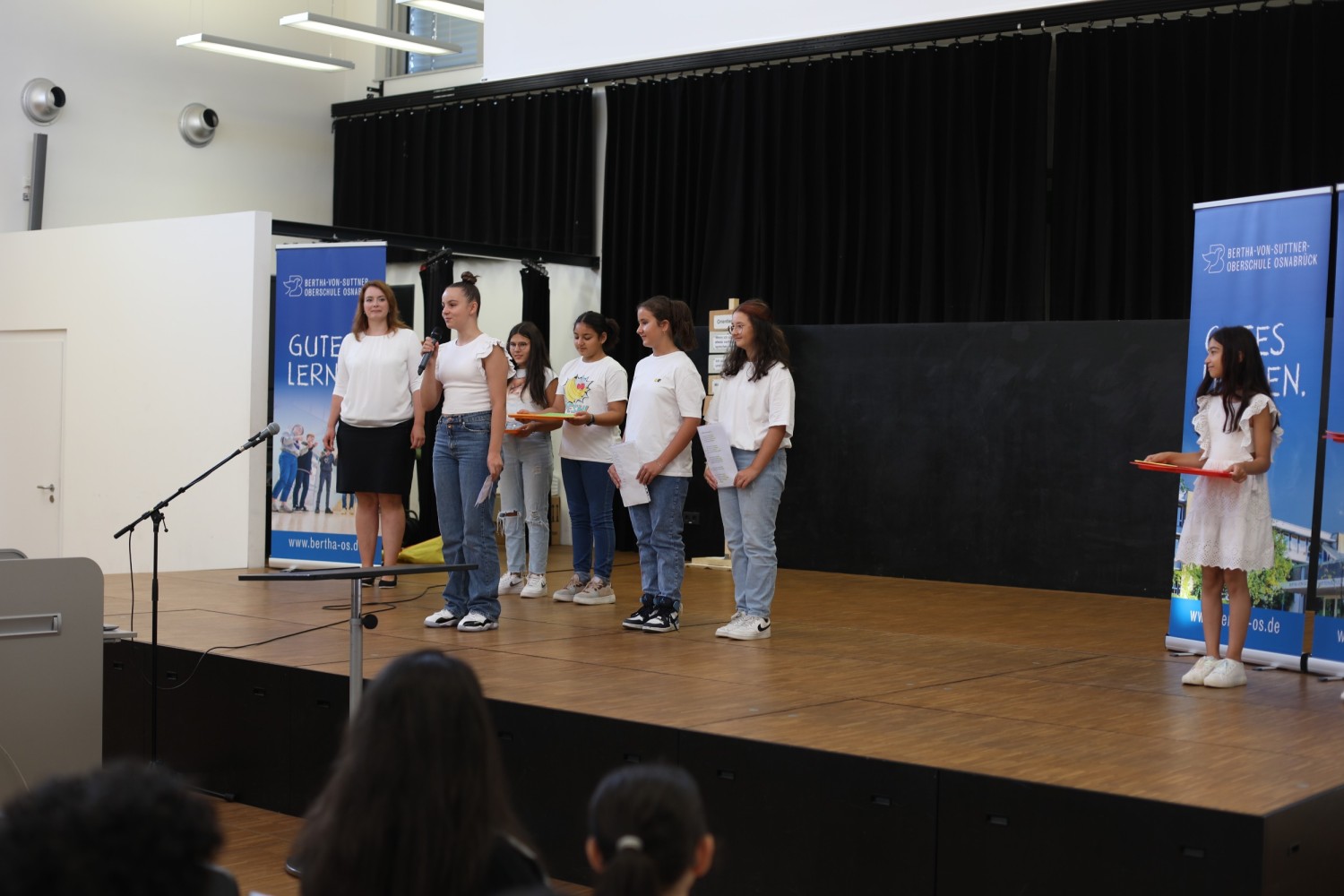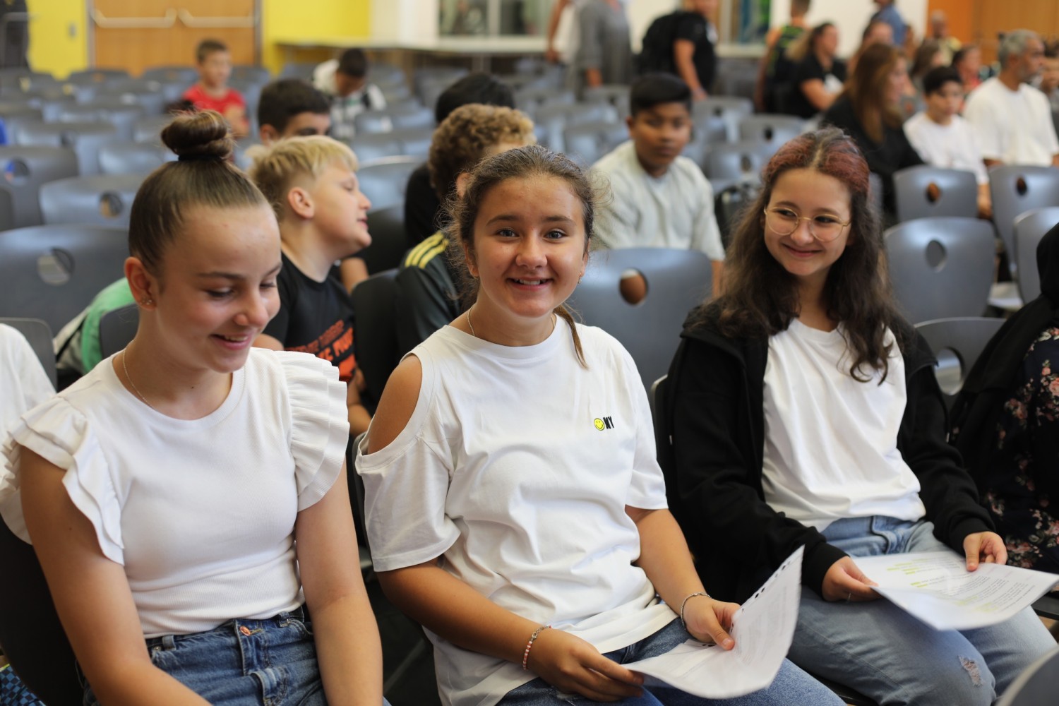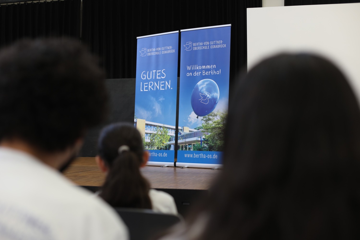 "Schön, dass ihr da seid!" - Treffender lässt sich kaum beschreiben, mit welcher Freude die neuen Fünftklässler von der Schulgemeinschaft begrüßt und in "ihre Bertha" aufgenommen wurden. So startete sichtlich erfreut unser Schulleiter, Herr Sandkämper, die Begrüßungsfeier mit freundlichen und auffordernden Worten. Die neuen Berthanerinnen und Berthaner sind eingeladen langsam mit ihrer neuen Schule zusammenzuwachsen. Dabei behilflich werden neben der Konrektorin Frau Herr Heller und dem diadaktischen Leiter Herr Fißmeyer auch ganz besonders die Mitglieder des Beratungsteams unserer Schule sein, die sich ebenfalls an diesem besonderen Freitag vorstellten.