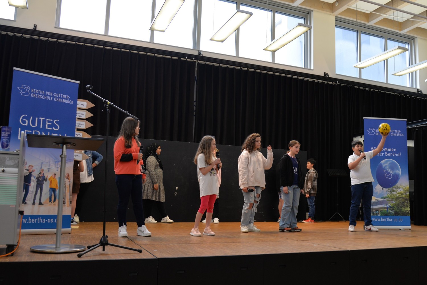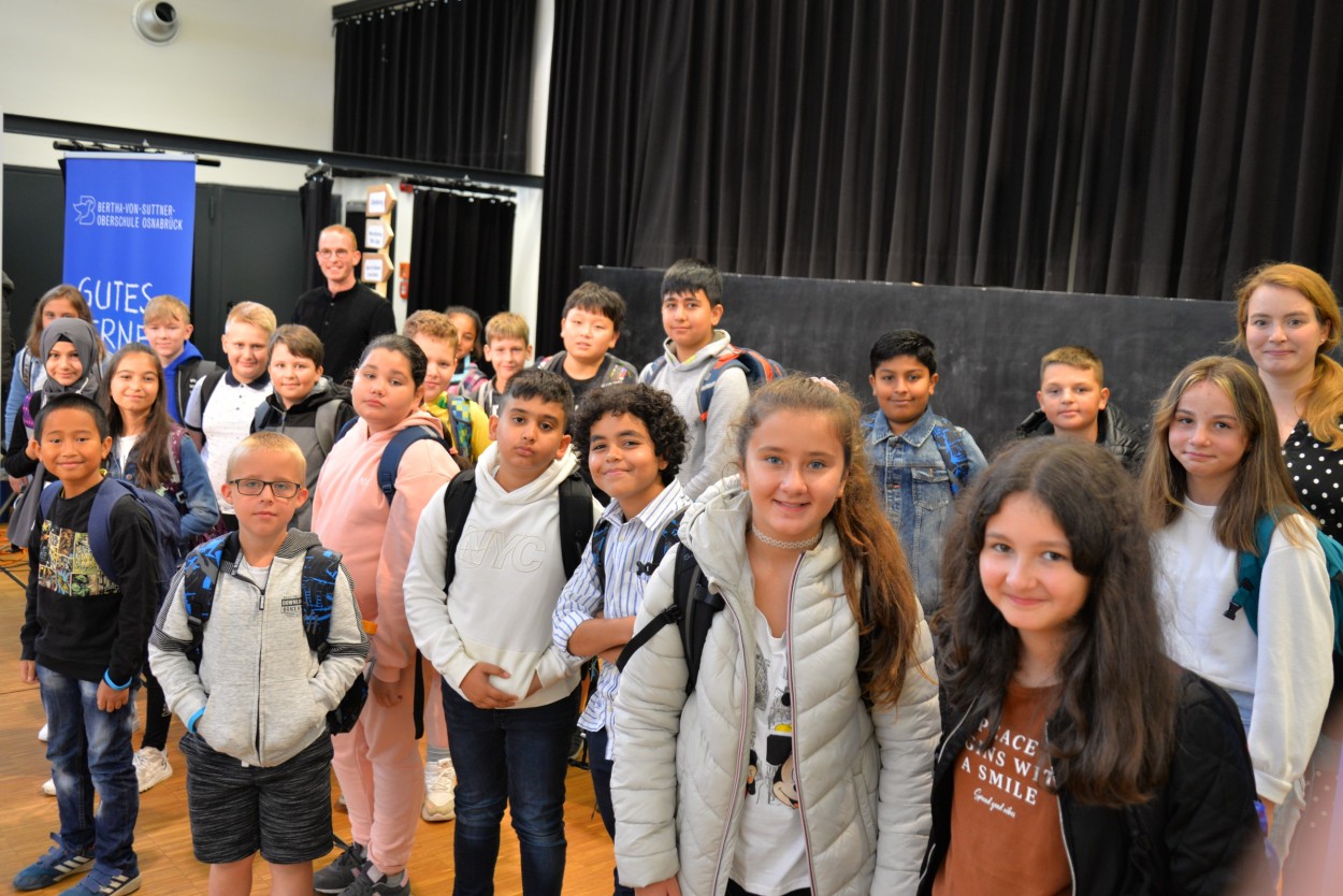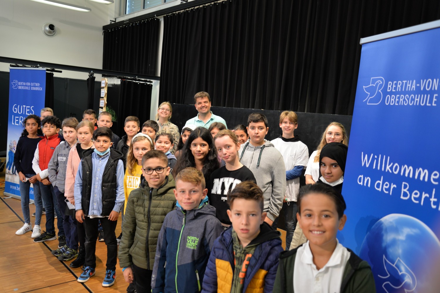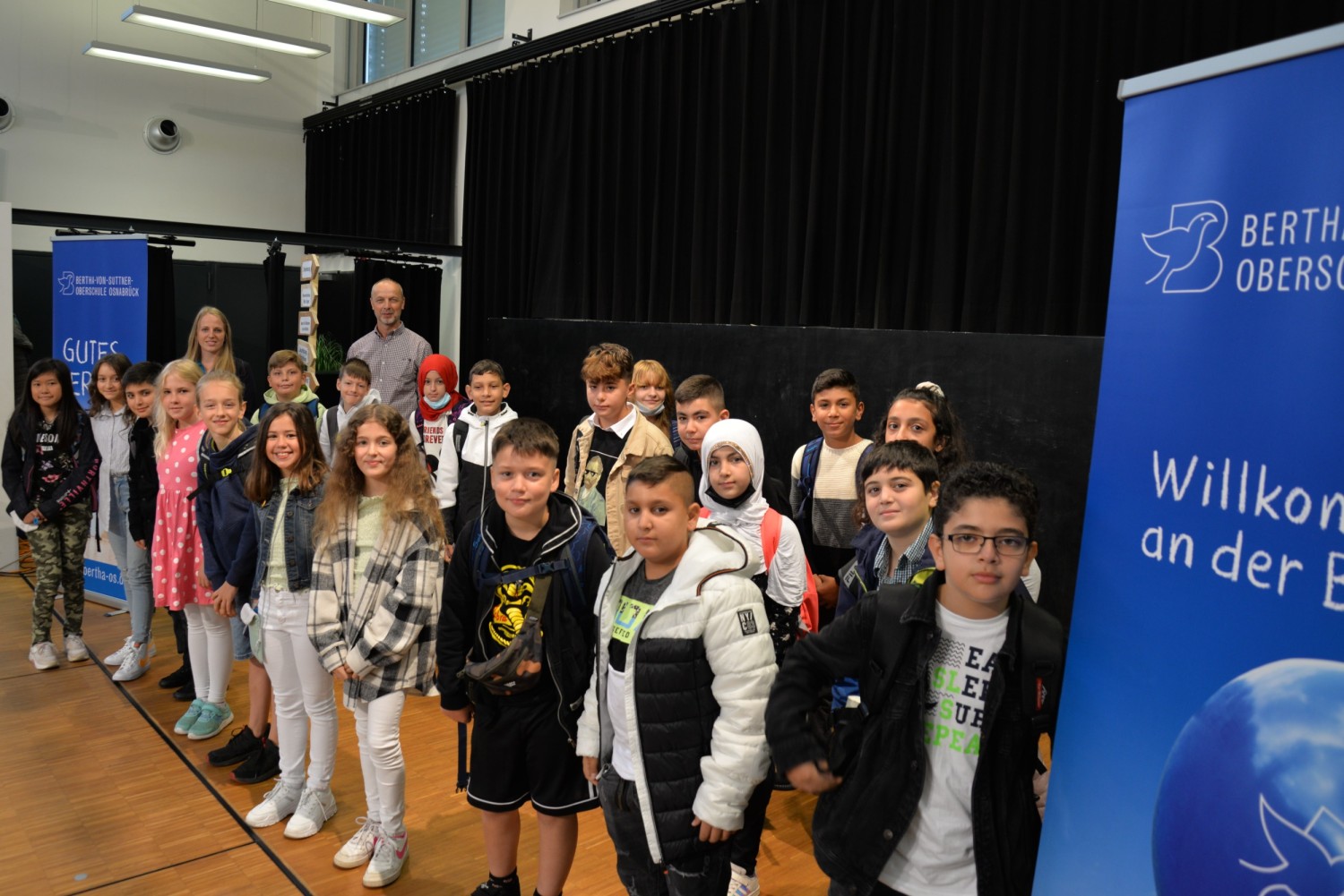 Unsere neue Aula bot den neuen Fünftklässlern und deren Eltern nicht nur genug Platz, sondern präsentierte sich auch als ein angemessener Ort für diese wichtige Feier am Schuljahresbeginn. Schließlich starten nun die ersten Oberschülerinnen und Oberschüler an unserer Bertha, und unserer Oberschule wird somit ihr Lebensatem eingehaucht.
