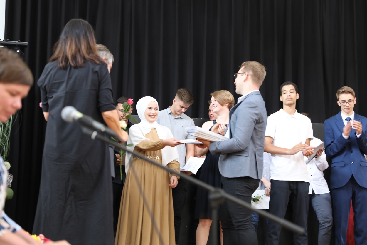 Auch die anwesenden Eltern, Klassenlehrer und natürlich die Schüler selber waren froh über die erbrachten Leistungen und blickten, angeregt durch die Reden des Fördervereins und der Schülervetreter, auf eine spannende und "bunte" Zeit an der Bertha zurück. Gerade weil die Abschlusschüler die letzten Monate unter den Bedingungen der Pandemie leiden musssten, schauten doch viele auf eine tolle Zeit zurück. Sechs gemeinsame Jahre an der Bertha!