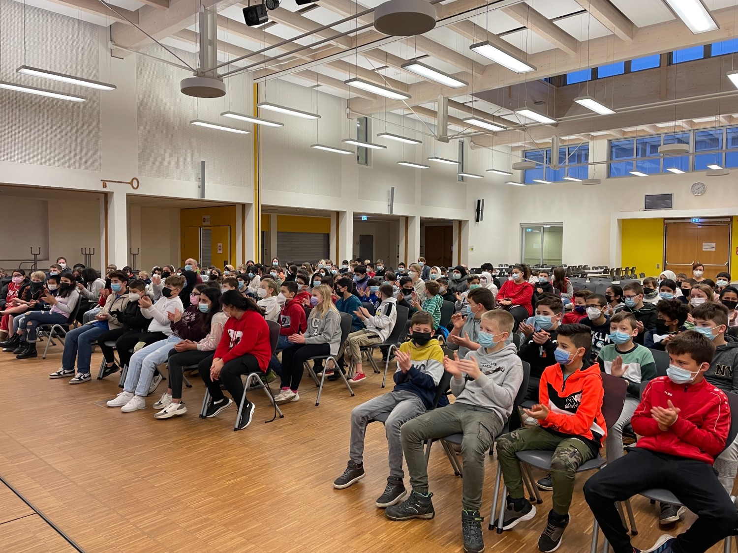 Aus Berlin, ihrer Heimatstadt, angereist beginnt die Schriftstellerin von Kinder-, Jugend und Erwachsenenbüchern zu erzählen, wie und warum sie Schriftstellerin geworden sei. So erfuhren die Schülerinnen und Schüler, dass Frau Fessel bereits von klein an, Schriftstellerin werden wollte. Beeindruckt waren sie auch, dass die Bücher in so viele Sprachen übersetzt worden sind. Mit Beginn der Lesung lauschten die beiden Jahrgänge dann Auszügen aus einigen Büchern. So konnten sich die Schülerinnen und Schüler z. B. in die Erzählung „Ein Stern namens Mama“ hineinversetzen.