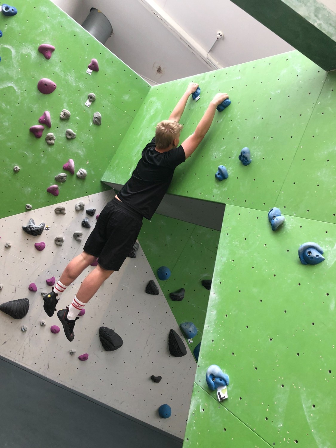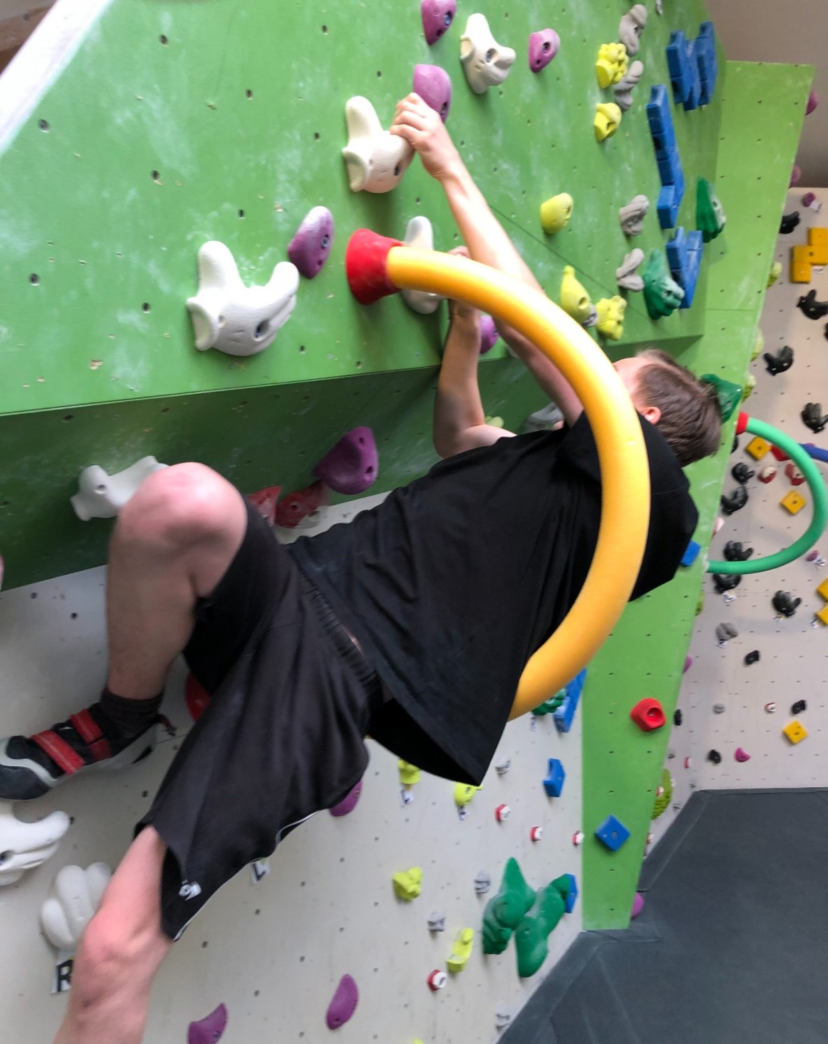 Am zweiten Tag konnten viele neue Boulderfans berichten, dass doch eine Vielzahl von Muskelgruppen am Tag zuvor arg strapaziert wurden, und der erste kleine Muskelkater sich einstellte. Dieser war jedoch schnell vergessen, wenn es galt, eine neue Route auszuprobieren und sich neuen Anforderungen zu stellen. Ein Lernerfolg für's Leben.