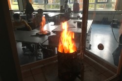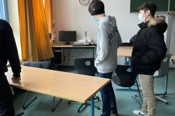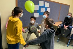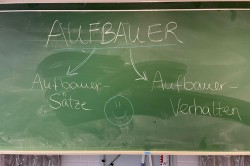 In der Klasse von 5d von Frau Florian und Herrn Hehemann ging es für die Fünftklässler darum, die täglichen "Fertigmacher", also Sprüche und Gesten, womit man sich gegenseitig verletzt oder "runtermacht" auszulöschen. Böse Worte und schlechte Formulierungen wurden gesammelt und dann feierlich unter dem Abzug im Chemieraum verbrannt. An deren Stelle traten "Aufbauer-Sprüche", die man auf Plakaten sammelte und die jetzt den Klassenraum der 5d zieren.