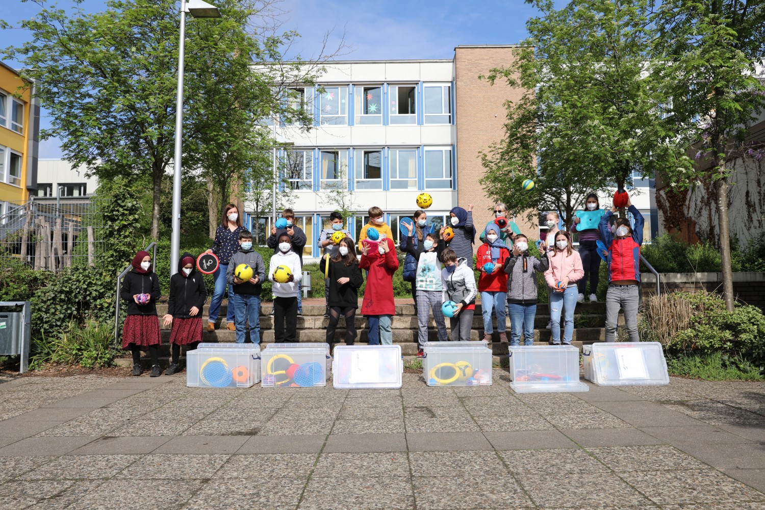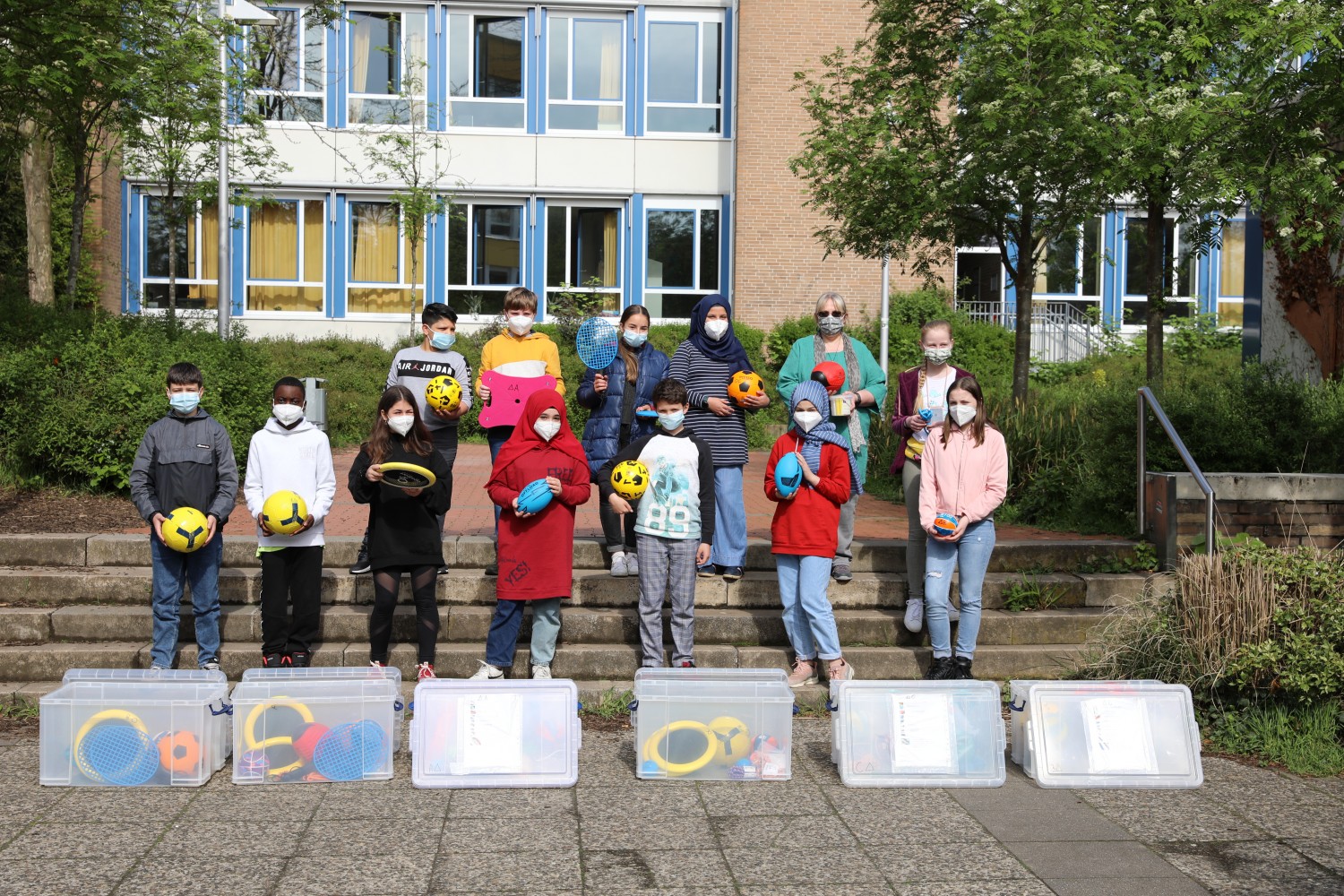 Gemeinsam mit der Lehrerin Julia Warnke wurden Spielekisten mit attraktiven Spielgeräten für alle Klassen 5 und 6 zusammengestellt und heute in einem Treffen in der Schule an die Klassensprecher übergeben. Als Schulleiter unterstütze ich die Spende des Fördervereins natürlich sehr, weil dadurch eine Möglichkeit geschaffen ist, dass die Kinder in ihren einzelnen Pausenbereichen miteinander spielen können und sich durch das Spiel auch menschlich wieder näherkommen, so Martin Sandkämper. Die ersten Reaktionen der Schüler zeigen, dass der Förderverein mit seiner Unterstützung goldrichtig liegt.