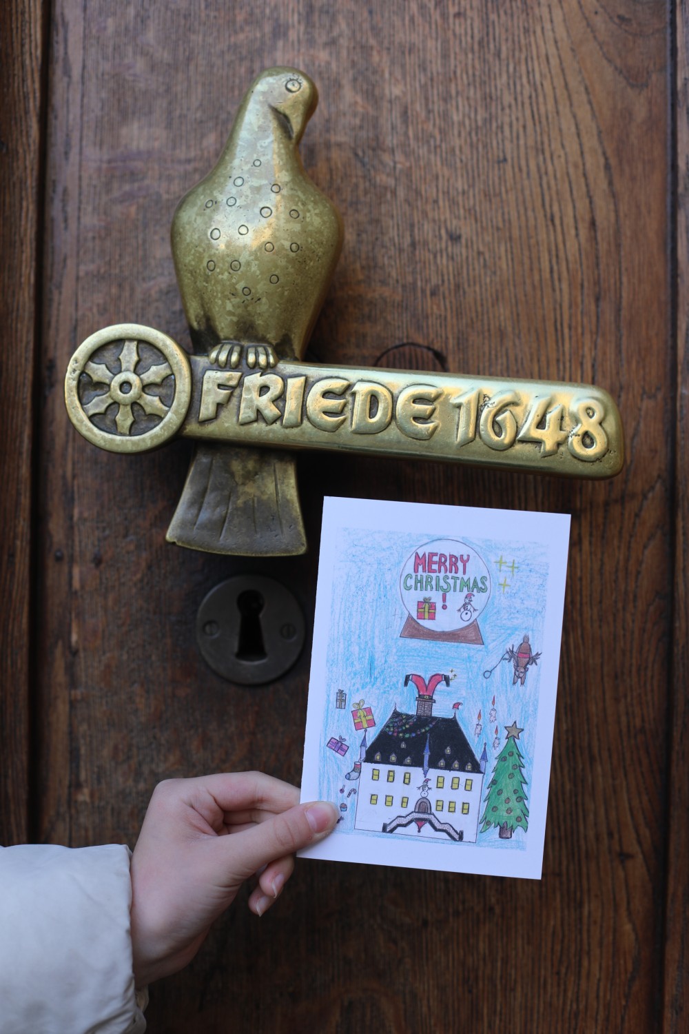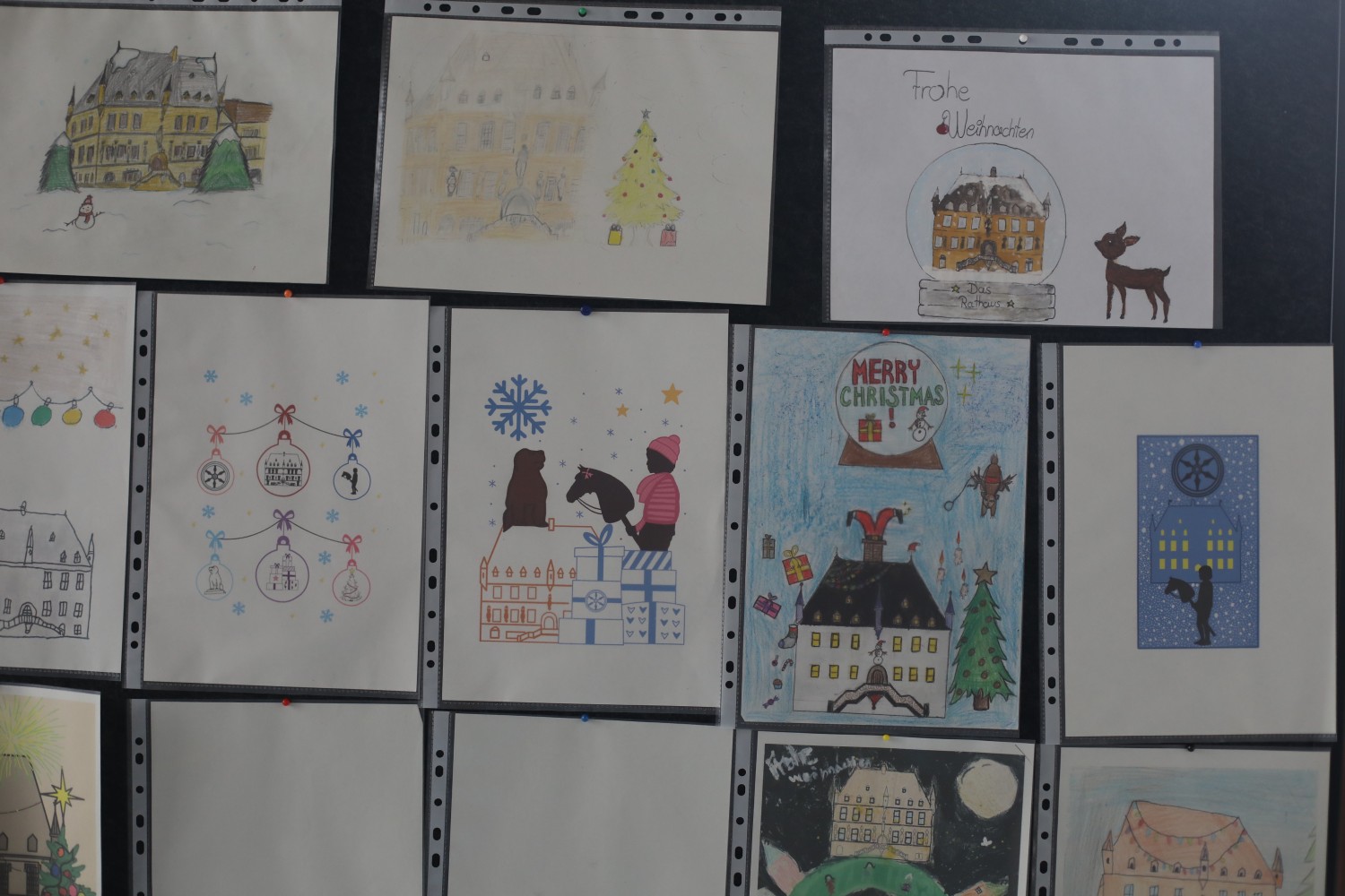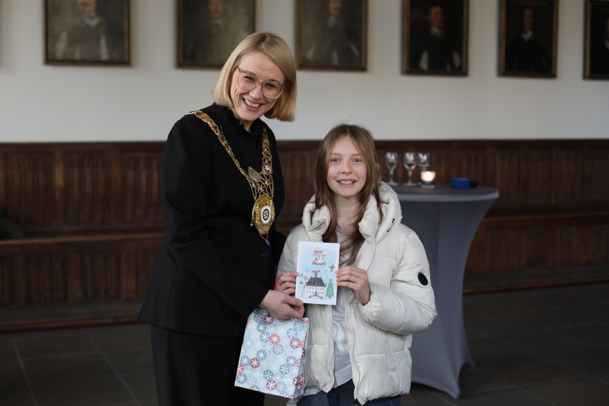 Bereits zum dritten Mal wurde die offizielle Weihnachtskarte der Oberbürgermeisterin von Schülerinnen und Schülern gestaltet – in diesem Jahr von der „Bertha“. Aus einer Auswahl von knapp 20 eingereichten Entwürfen entschied sich Katharina Pötter schließlich für das Motiv von Marta K. aus dem 5. Jahrgang. Ihr Bild überzeugte durch eine besonders unterhaltsame, stimmungsvolle und zugleich originelle Gestaltung.