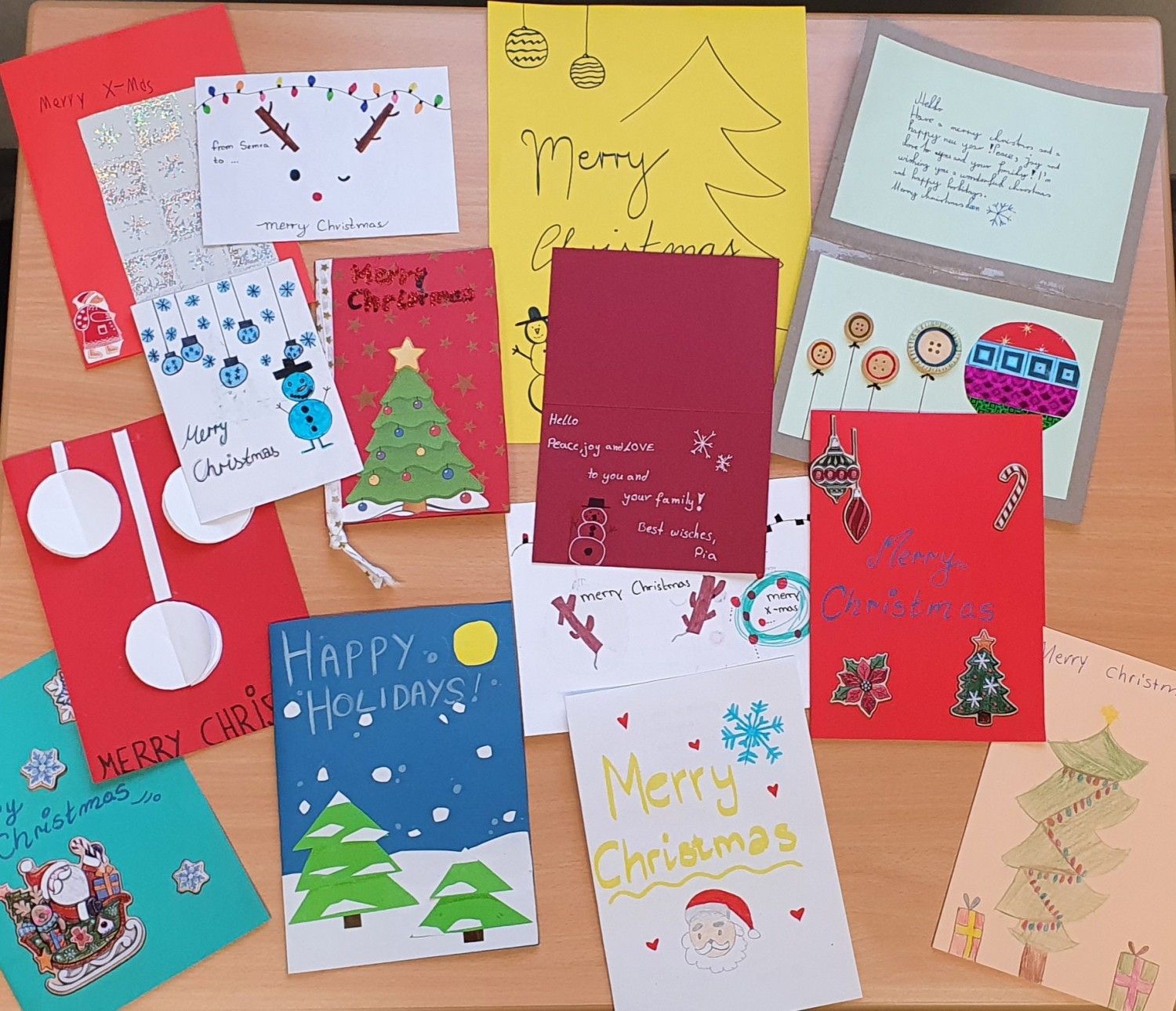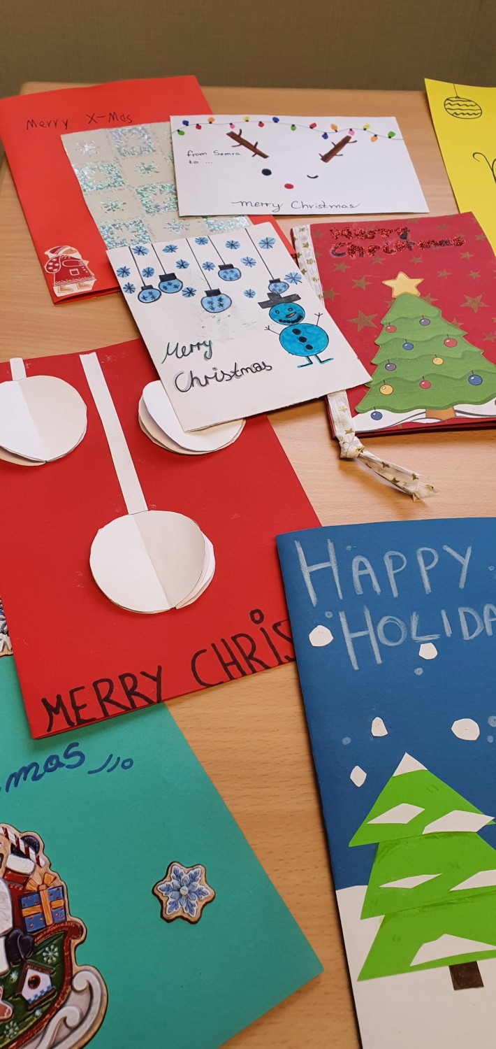 Es wurden viele tolle und kreative Karten gebastelt und kleine Texte auf Englisch verfasst. Die Weihnachtspost macht sich nun zu Schülerinnen und Schülern auf den Weg nach Derby und wir sind schon gespannt, welche Karten uns im Gegenzug erreichen werden. Den Besuch der Städtebotschafterin erwarten wir mit großer Spannung!
